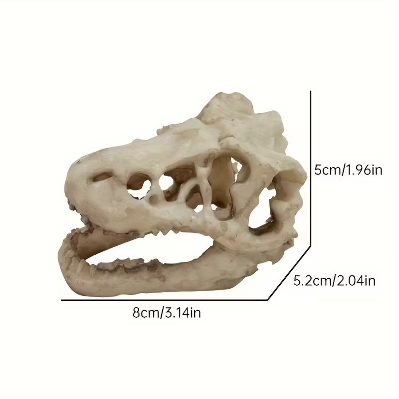 Auffälliger Dinosaurier-Schädel aus Resin – ideal als Blickfang und Versteck in Aquarien und Terrarien. Das realistische Design mit feinen Details schafft eine urzeitliche Atmosphäre und bietet gleichzeitig Rückzugsorte für kleine Tiere. Ungiftig, langlebig und leicht zu reinigen. Perfekt für kreative Aquascaping-Themen oder als Geschenk für Dino-Fans.