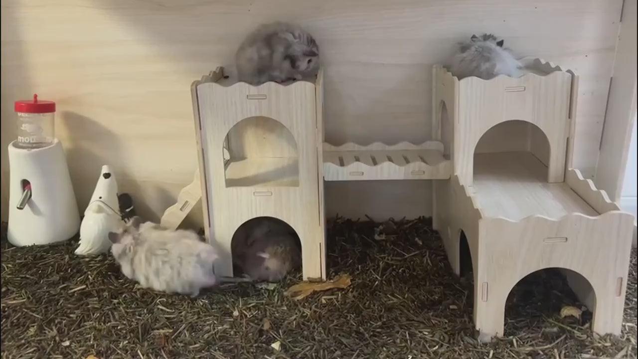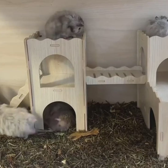 Dekorative Holzburg für Hamster, Mäuse & andere Kleinnager – ideal zum Klettern, Verstecken & Spielen im Käfig. Aus unbehandeltem Naturholz. Jetzt bei haustierwelt.ch entdecken!