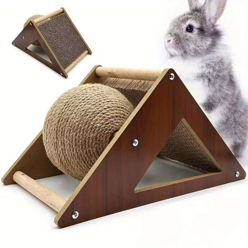 Sorge für Spaß und gesunde Beschäftigung! Unser interaktives Kratzbrett mit Ball und Kratzpfosten ist ideal für Kaninchen und andere kleine Haustiere.