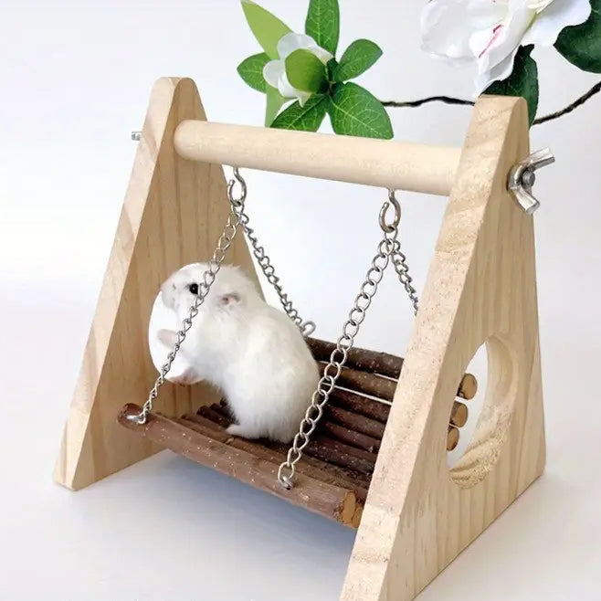 Bringe Schwung in den Alltag deines kleinen Lieblings mit dieser liebevoll gestalteten Hamster-Schaukel aus natürlichem Holz! Die robuste Konstruktion mit dekorativen Metallketten bietet nicht nur sicheren Spielspaß, sondern auch ein stilvolles Highlight im Käfig. Ideal für Hamster, Mäuse und andere Kleintiere – dieses Aktivitätszentrum fördert Bewegung, Gleichgewicht und Neugier. Die glatte Holzoberfläche ist kausicher und frei von schädlichen Stoffen, perfekt für ein artgerechtes und spielerisches Zuhause. Einfach zu montieren und ein echter Blickfang für jedes Gehege!