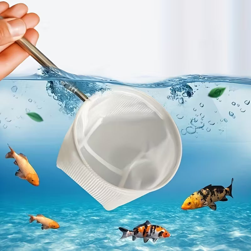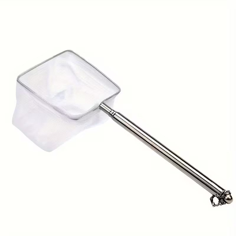 Robuster Aquarium-Kescher mit ausziehbarem Edelstahlgriff und feinem Nylonnetz. Ideal zum sicheren Fangen und Umsetzen von Fischen sowie zum Entfernen von Futterresten und Schmutz. Der Griff ist rostfrei, langlebig und lässt sich flexibel an die Beckengröße anpassen. Kompakt, leicht und mit praktischer Aufhängeöse zur einfachen Lagerung.